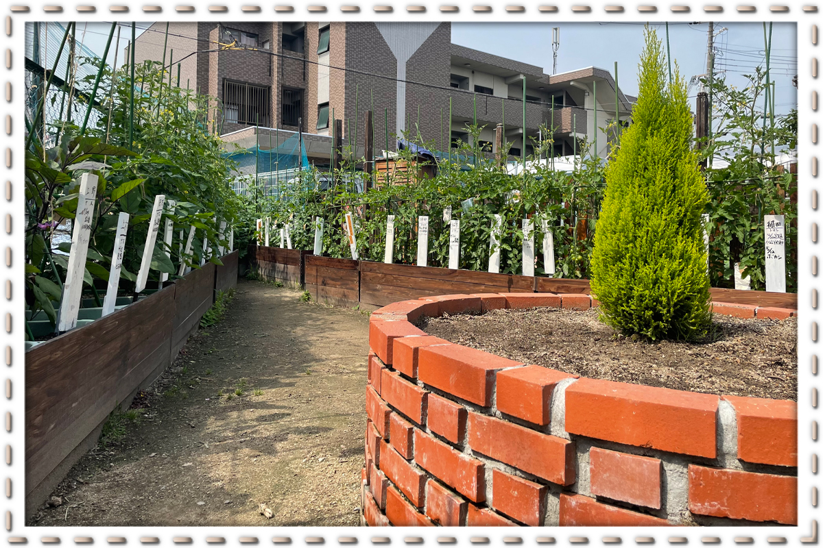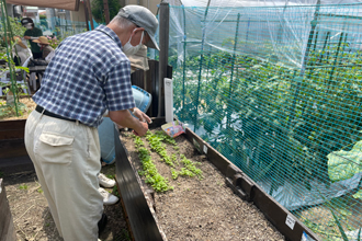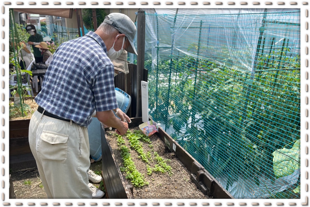 施設併設の畑を使い園芸療法で利用者様の認知症ケア・予防に取り組んでおります。